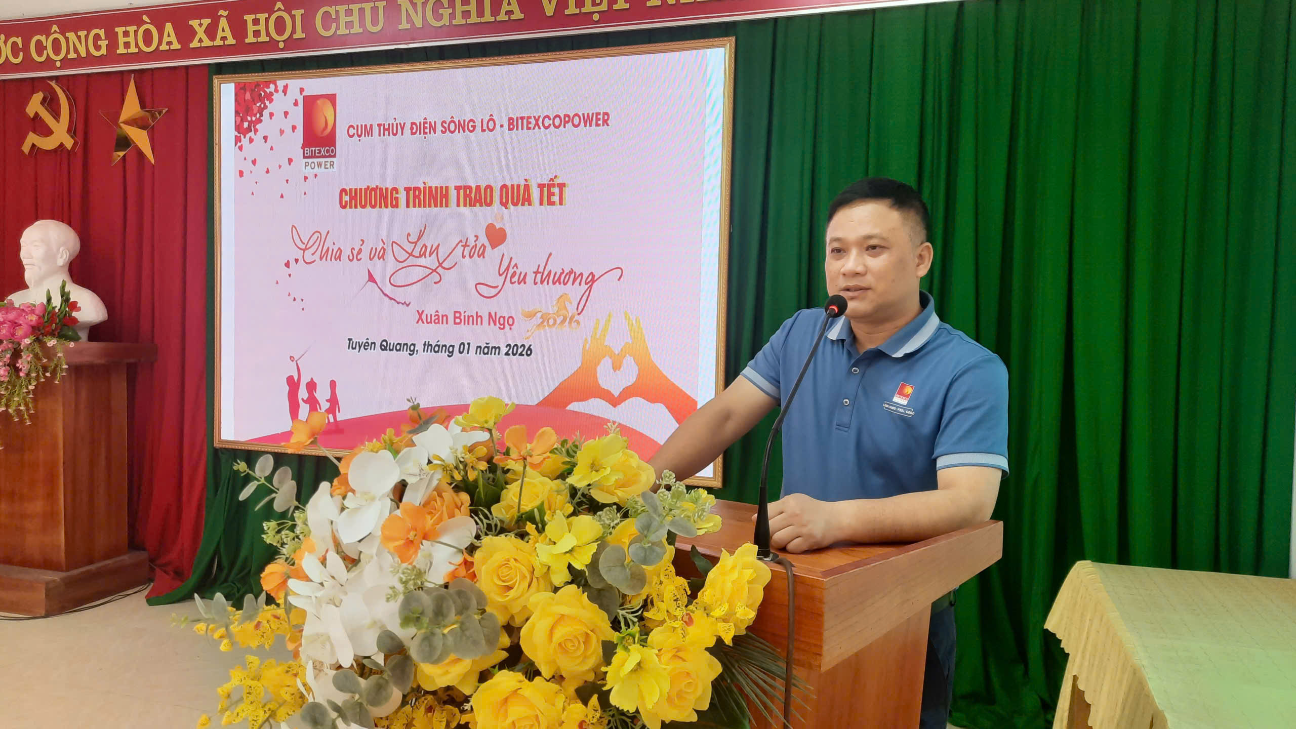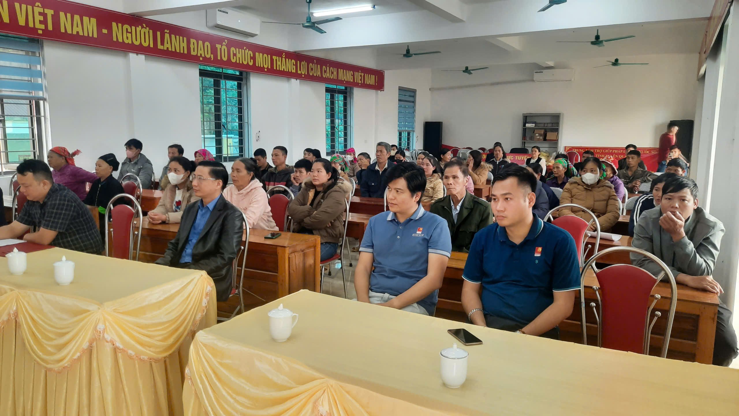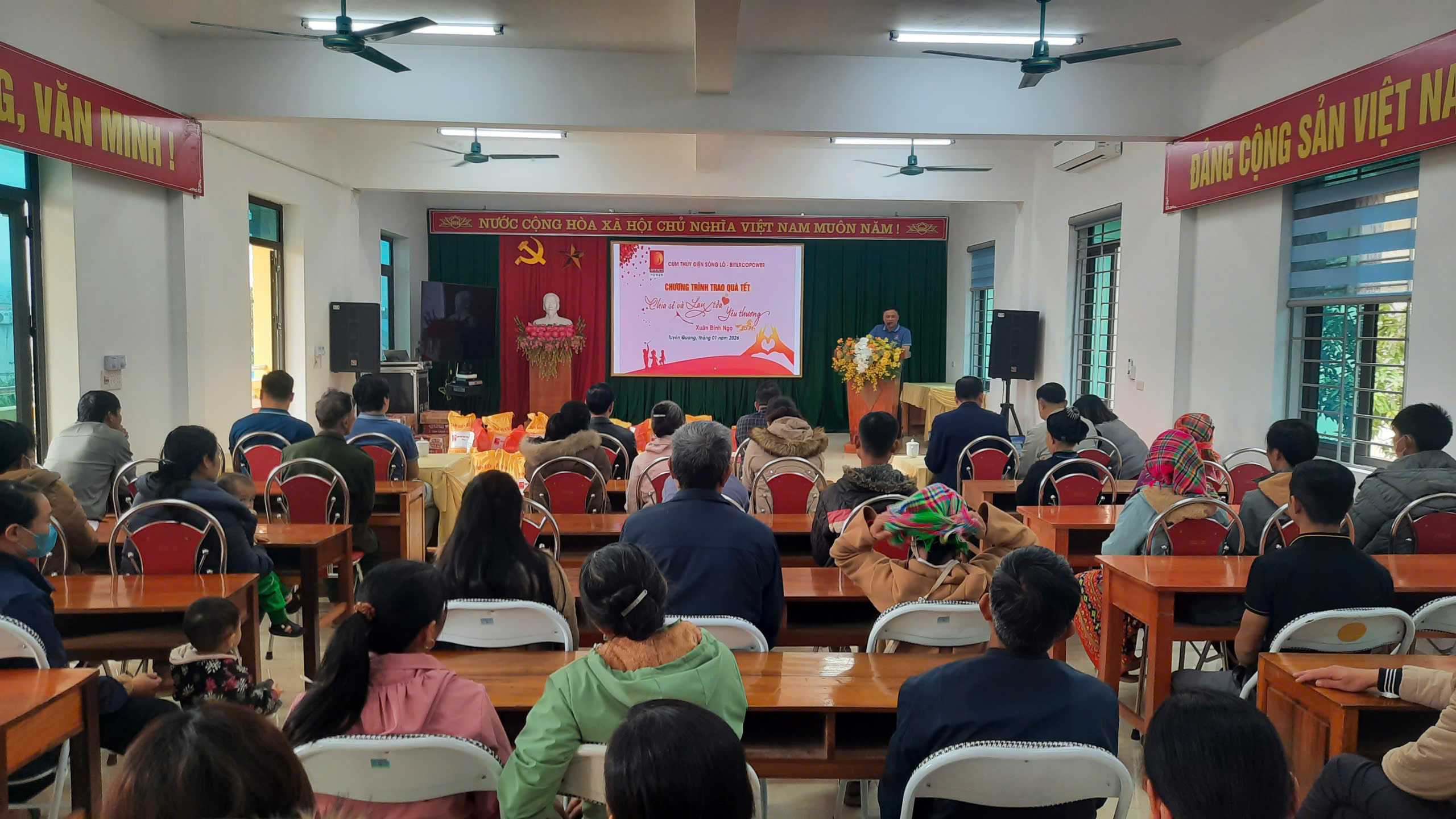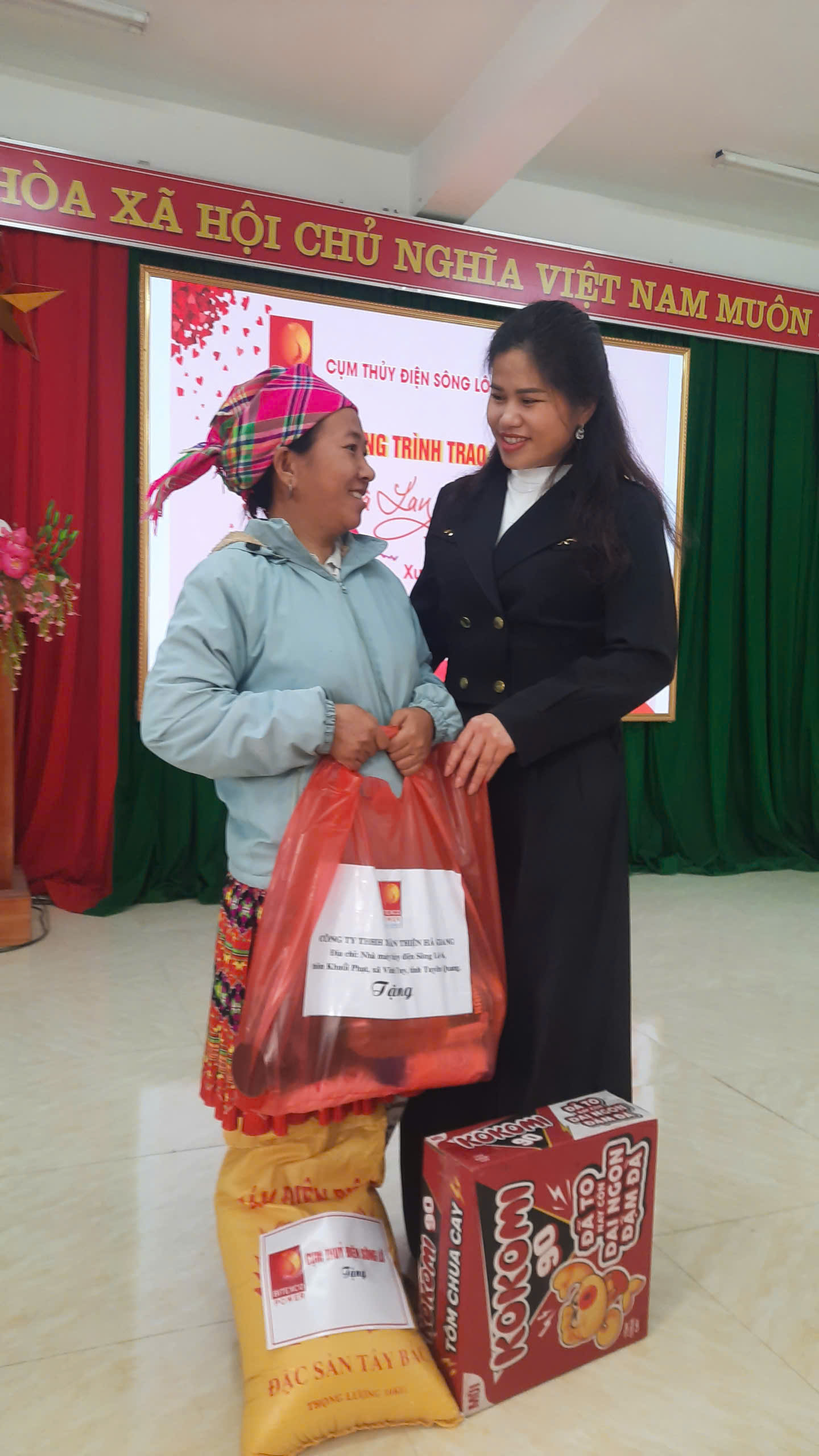 Dự buổi trao quà có đồng chí Nguyễn Bá Tuấn – Phó bí thư Đảng ủy, chủ tịch UBND xã; Đồng chí Giàng Thị Hoa - Ủy viên BTV Đảng ủy, chủ tịch Ủy ban MTTQ xã, các đồng chí trong thường trực UBND xã, lãnh đạo các phòng ban thuộc UBND xã; đại diện lãnh đạo công ty TNHH Xuân Thiện Hà Giang, Đại diện cán bộ, nhân viên Cụm thủy điện Sông lô và 50 hộ nghèo, cận nghèo trên địa bàn xã.